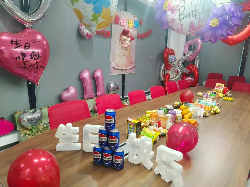生日会现场,各种温暖的元素巧妙点缀其间,还有特意准备的热饮区,处处流露着这个季节独有的温馨。 当生日蛋糕上的烛光摇曳,仿佛冬日里跃动的暖阳,照亮每一张幸福的笑脸。 在这个积蓄力量的季节,我们为员工送上最诚挚的祝福。每月的生日会,就像冬日里的暖阳,温暖着每一位奋斗者的心。我们相信,此刻的相聚与欢笑,正是为了积蓄力量,共同期待下一个春天的绽放。 再次祝福十一月生日的同事们:愿这个生日的温暖,伴你度过整个冬天;愿公司的关怀,如冬日暖阳,始终与你同行。